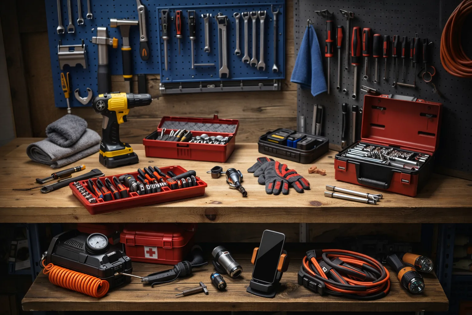 Най-добрият подход е да мислите в посока на практичен комплект, а не на случайни покупки. Един добър стартов комплект за дома и гаража може да включва: