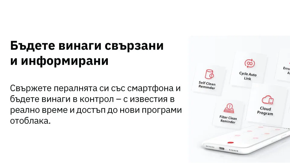 С вграден Wi-Fi, пералнята може да бъде управлявана дистанционно чрез смартфон. Това означава, че можете: