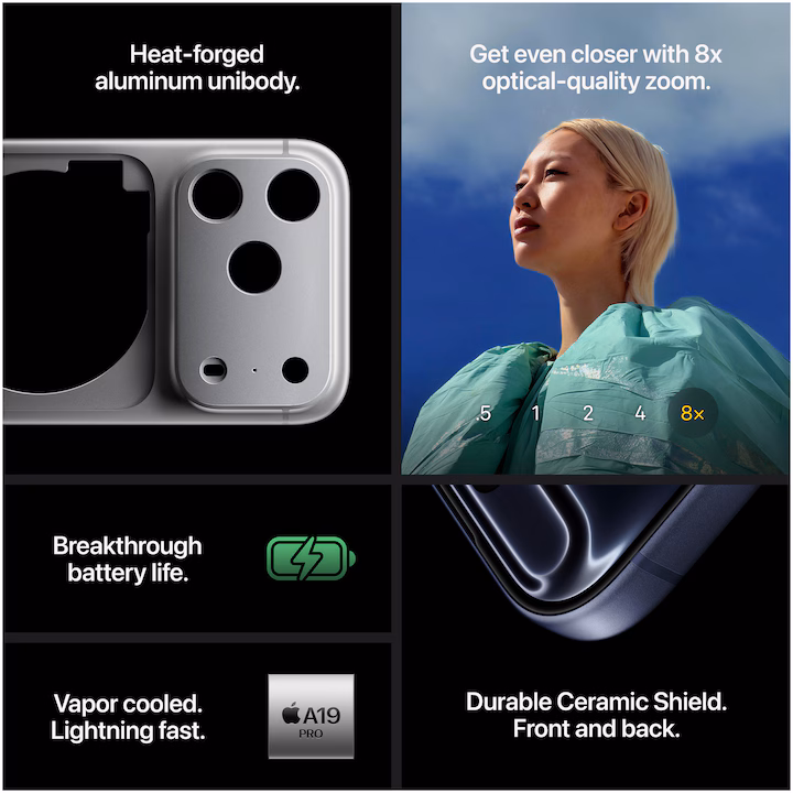 Сърцето на iPhone 17 Pro Max е новият процесор Apple A19 Pro, който предлага изключителна производителност и енергийна ефективност. С 16 ядра, този чип осигурява бърза работа при всякакви задачи – от ежедневни приложения до тежки игри и обработка на видео. Комбинацията с 12GB RAM гарантира безпроблемен мултитаскинг.