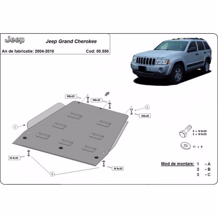 Предпазната кора е изработена от висококачествен метал, устойчив на натоварване и външни влияния. Благодарение на прецизното си оформление, тя е напълно съвместима с геометрията на Jeep Grand Cherokee WK2 от посочения период и пасва точно на фабричните монтажни точки на автомобила.