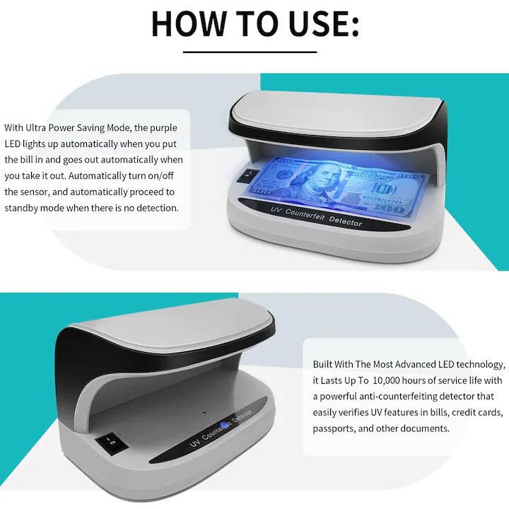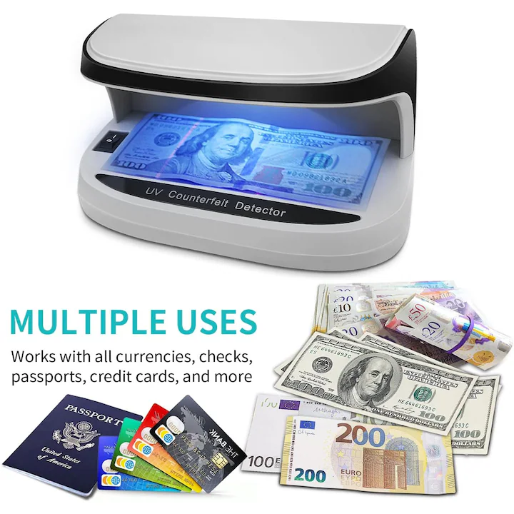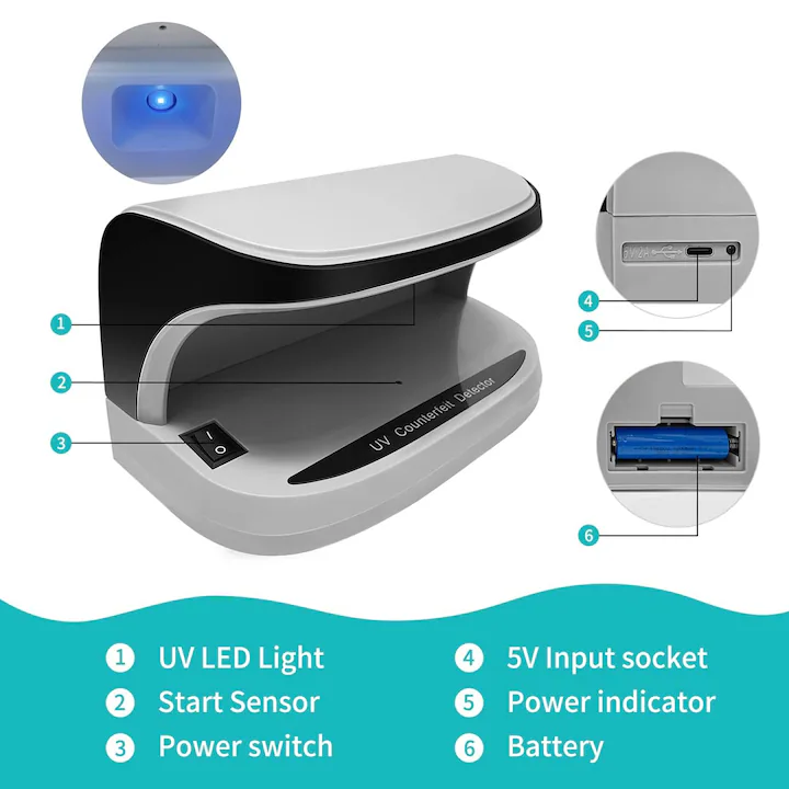 UV защитите върху съвременните банкноти са ключов елемент за предотвратяване на фалшифициране. Детекторът Axroad Mall използва мощна UV светлина, която подсилва видимостта на флуоресцентни елементи, нишки, маркировки и символи, присъстващи в легитимната валута. Освен UV светлина, моделът разполага и с силна LED осветеност, която позволява проверка на водни знаци, холограми и микроелементи, видими при бяла светлина. Така детекторът комбинира две технологии, за да предостави максимална защита и точност.