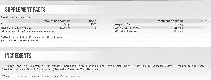 Дневната доза съдържа 1220 mg Tribulus terrestris екстракт.