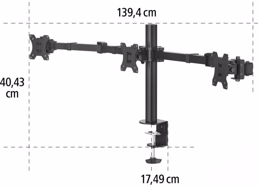 Hama предлага тази висококачествена стойка за монитори, която може да поддържа до три монитора с размери от 13 до 27 инча. Тя е идеалното решение за потребители, които имат нужда от повече работно пространство и искат да организират мониторите си по ефективен начин.